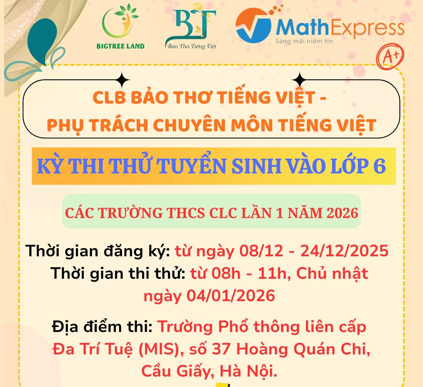 ĐĂNG KÝ THI THỬ TUYỂN SINH VÀO LỚP 6 CÁC TRƯỜNG THCS CHẤT LƯỢNG CAO NĂM 2026 (LẦN 1)
